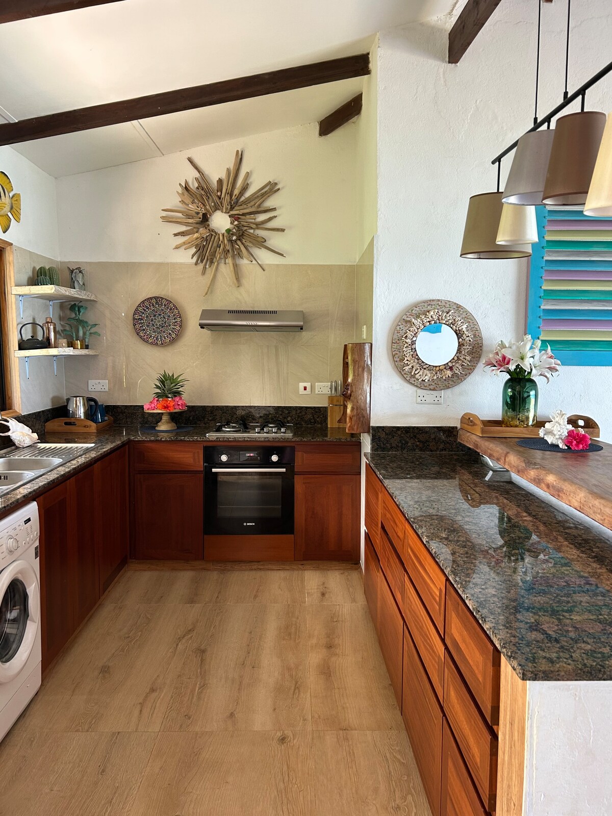 Nuestra villa toma su nombre de los árboles de Takamaka nativos de Seychelles y “Tamanu” es un sinónimo de Takamaka en el sudeste asiático. Imagínate en una impresionante villa de madera, equipada con todas las comodidades de un hogar en medio de un exuberante entorno tropical. Esta casa de vacaciones combina una decoración relajada inspirada en la playa con la belleza natural, creando una escapada tranquila que se mezcla con el vibrante paisaje de Praslin. Aquí disfrutarás del equilibrio perfecto de servicios modernos y un auténtico ambiente isleño.