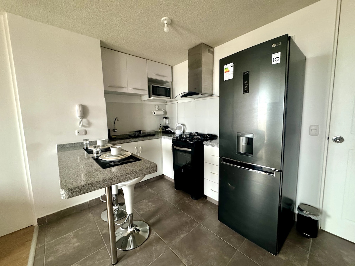 Disfruta de un espacio cómodo y funcional ideal para estadías cortas o largas. El mini departamento cuenta con: 1 dormitorio independiente para tu descanso. Sala - comedor acogedora, perfecta para relajarte o compartir. 1 baño completo con todas las comodidades. Un lugar práctico y bien distribuido, pensado para que te sientas como en casa. Ideal para parejas, viajeros de trabajo o quienes buscan comodidad en un ambiente privado. Hermoso departamento en el piso 12 – último nivel del edificio