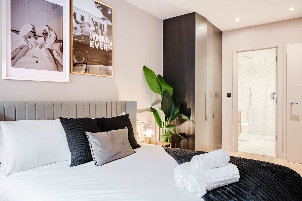 Nova Lux es un apartamento moderno de 2 dormitorios y 2 baños perfectamente ubicado entre los distritos Northern Quarter y Ancoats de Manchester. • Dos elegantes habitaciones en suite, ambas con armarios empotrados. • Cocina contemporánea totalmente equipada con una sala de estar de diseño abierto. • Televisor inteligente de 55 pulgadas con acceso a Netflix y Amazon Prime.
