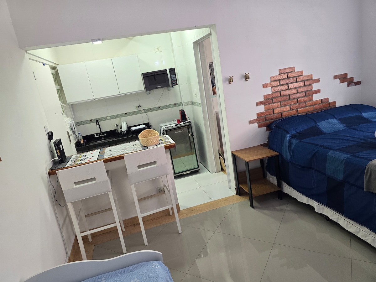 ¡Bienvenido a tu acogedor y encantador estudio en Ponta da Praia, uno de los barrios más encantadores de Santos! Ideal para parejas, viajeros de negocios o solitarios, nuestro alojamiento ofrece todo lo que necesitas para una estancia cómoda: Ropa de cama y baño. Cochera colectiva insuficiente en el edificio. Entorno integrado con una cómoda cama, armario y TV. Cocina equipada para preparar comidas sencillas. Baño con ducha relajante y máquina de toallas térmicas. Espacio compacto, práctico y acogedor.