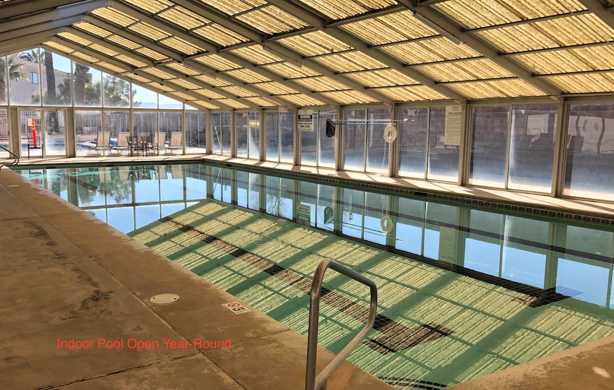 Spacious ground level condo, hot tubs, indoor pool