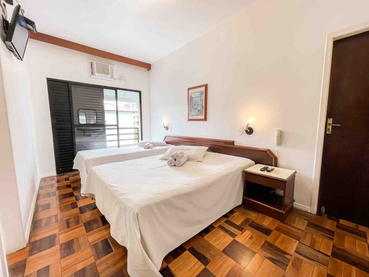 La suite de un solo soporte es acogedora y completa, tiene capacidad para 02 personas, en excelente ubicación, a 150 metros de la playa de Cachoeira do Bom Jesus. Ambiente amueblado y decorado. La suite está equipada con 02 (dos) camas individuales, minibar, televisores inteligentes y aire acondicionado, Internet. **ATENCIÓN EN EL MOMENTO DE HACER TU RESERVA** si el número de huéspedes de la reserva se completa de forma incorrecta, el cargo por huésped adicional se realizará en el momento del check-in
