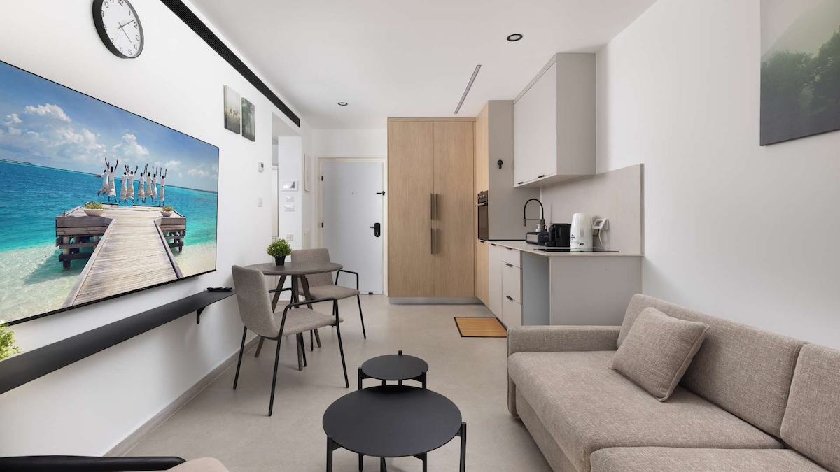 דירת 2 חדרי שינה וסלון מאוד מרווחת. מספקת שילוב מושלם של נוחות, נוחות ונופים מדהימים, מה שהופך אותה לבחירה אידיאלית עבור אלה המחפשים מפלט בלתי נשכח על חוף הים. היעד המשולם למשפחות. הבריכה של המתחם. גולת הכותרת של הסוויטה היא שתי המרפסות, המציעות נוף עוצר נשימה של הים. דמיינו לעצמכם ליהנות מהקפה של הבוקר או לצפות בשקיעה מהנוחות של המרחב החיצוני הפרטי שלכם.