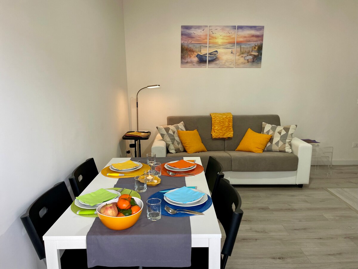 Apartamento entero a 300 metros del puerto y a 500 metros de la estación de tren, situado en el tercer piso con ascensor. Consta de entrada, amplio dormitorio con cama de matrimonio además de una cama individual y TV, sala de estar con sofá cama, TV inteligente y balcón con hermosas vistas a la plaza central, cocina con placa de inducción, horno microondas, cafetera, hervidor de agua y nevera, y baño con ducha. Recordamos a los huéspedes que en todas las ciudades italianas se debe pagar la tasa turística.