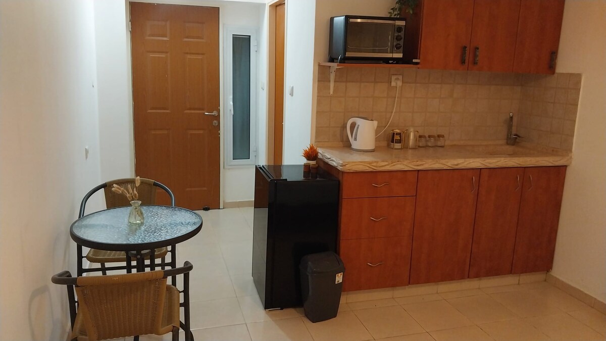 Acogedor y accesible apartamento en planta baja, con entrada privada al apartamento. Situado en el centro de Be 'er Sheva, en el barrio A, con mucho estacionamiento gratuito, vecinos encantadores en una zona tranquila y tranquila. A poca distancia del casco antiguo, el centro comercial Negev, el complejo de locomotoras, el Gran Cañón, el mercado y la estación central. Muchos lugares de entretenimiento a 5 minutos a pie de la zona de la Ciudad Vieja. El apartamento tiene una zona de estar al aire libre con mesa y sillas, un dormitorio con un armario grande y una cama amplia y cómoda y un televisor, en la cocina un refrigerador y microondas, en la sala de estar un sofá con ventilador de techo y un cómodo sofá, en la cara de la ducha y las toallas corporales, jabón de manos. La lavadora se puede arreglar con anticipación con el propietario de la casa.