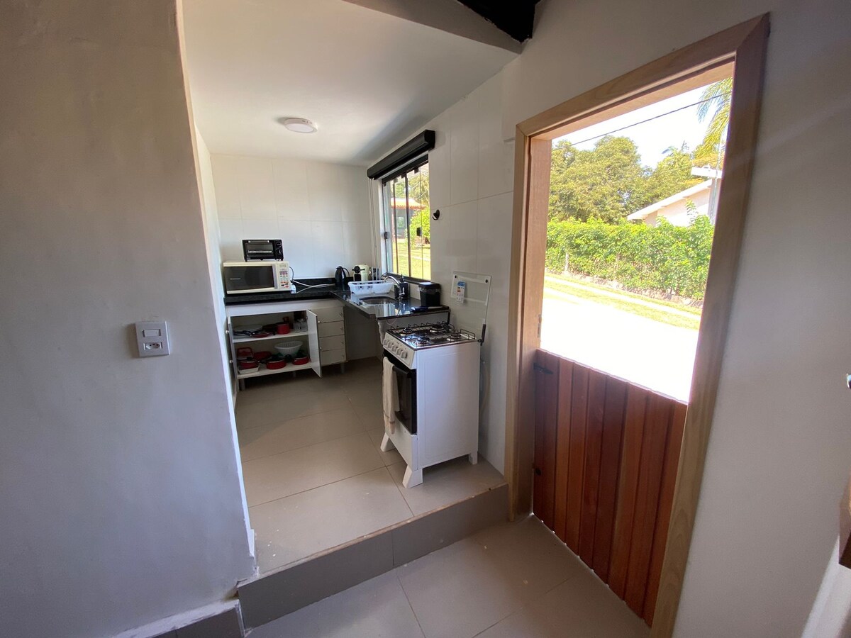 Un hermoso lugar para relajarse y divertirse con tus familiares y amigos. Esta casa tiene 1 dormitorio con aire acondicionado, 1 baño y una cocina integrada con sala de estar, wifi, TV inteligente con YouTube y Netflix. En el exterior tenemos barbacoa con una cómoda terraza y área de lavandería. La casa tiene acceso privado a la presa. Diviértete y disfruta de buenos momentos.