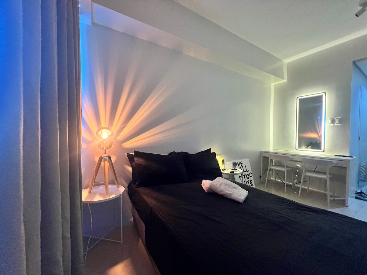 Disfruta de unas vacaciones estilo resort en nuestro apartamento totalmente amueblado con vistas al horizonte de la ciudad desde dos balcones. Disfruta de tus programas favoritos en servicios de streaming como Netflix, Amazon Prime y YouTube, disponibles para tu entretenimiento. Este apartamento ofrece una ubicación cómoda con fácil acceso a las mejores atracciones de la ciudad de Quezón. Para aquellos que buscan relajación, el complejo de apartamentos en sí ofrece una variedad de servicios que incluyen una piscina y un salón panorámico.