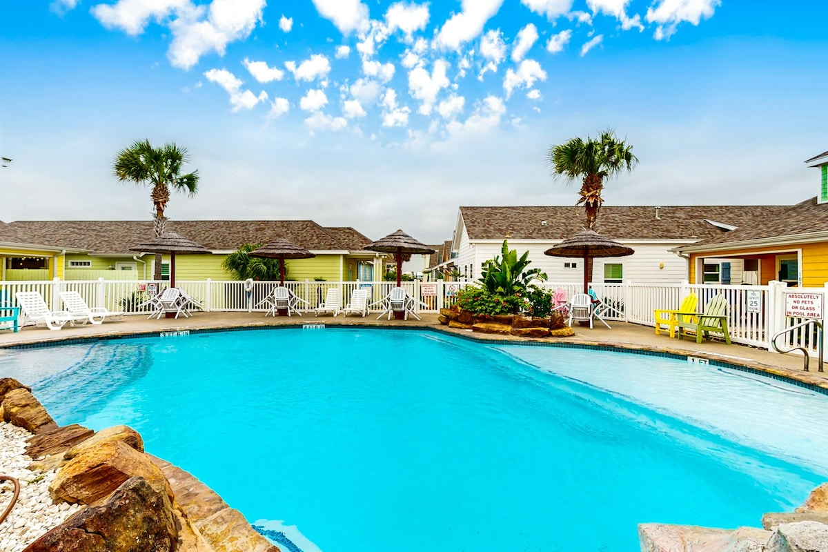 Disfruta de una estancia relajante en esta casa adosada de lujo en Port Aransas a pocos minutos de la playa. Sal por la puerta trasera a una piscina climatizada compartida, perfecta después de un día de sol. Este refugio de 3 dormitorios y 3 baños tiene capacidad para 10 personas e incluye una cocina completa, lavandería y todos los elementos esenciales para una escapada sin estrés. La suite principal está en el primer piso; arriba ofrece dos dormitorios privados, cada uno con su propio baño, además de un acogedor loft con TV y sofá cama. STR# 0584969