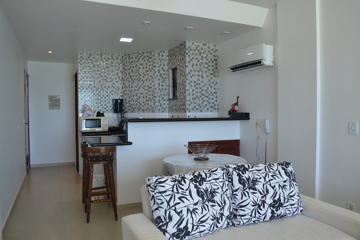 Este es el apto. 611. Aquí sabes dónde te quedarás en el momento de la reserva. ¡Precioso Loft frente al mar, 6º piso, vista cinematográfica! Cómodamente para hasta 6 personas en 2 camas dobles con colchón de muelles Ortobom más una cómoda cama doble. Aire acondicionado 18000BTUs, TV por cable de 43', purificador de agua fría y natural, cocina cocktop de 2 hornillas, heladera de 2 puertas, cafetera eléctrica, tostadora, microondas, licuadora, sandwichera y utensilios de cocina, incluida una olla a presión. Continúa en El espacio a continuación.