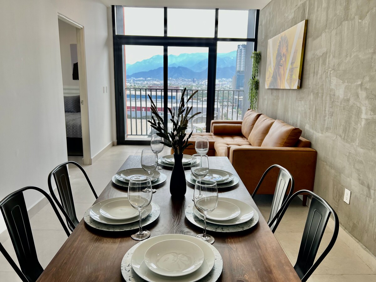 Espacioso y moderno alojamiento en la mejor zona del Centro de Monterrey con una excelente vista al Cerro de La Silla. El departamento se encuentra a solo dos cuadras del CAS para tus trámites de visa, las principales atracciones turísticas, hospitales, restaurantes, complejos para conciertos y centros de negocios están todas a menos de 10 minutos en auto.