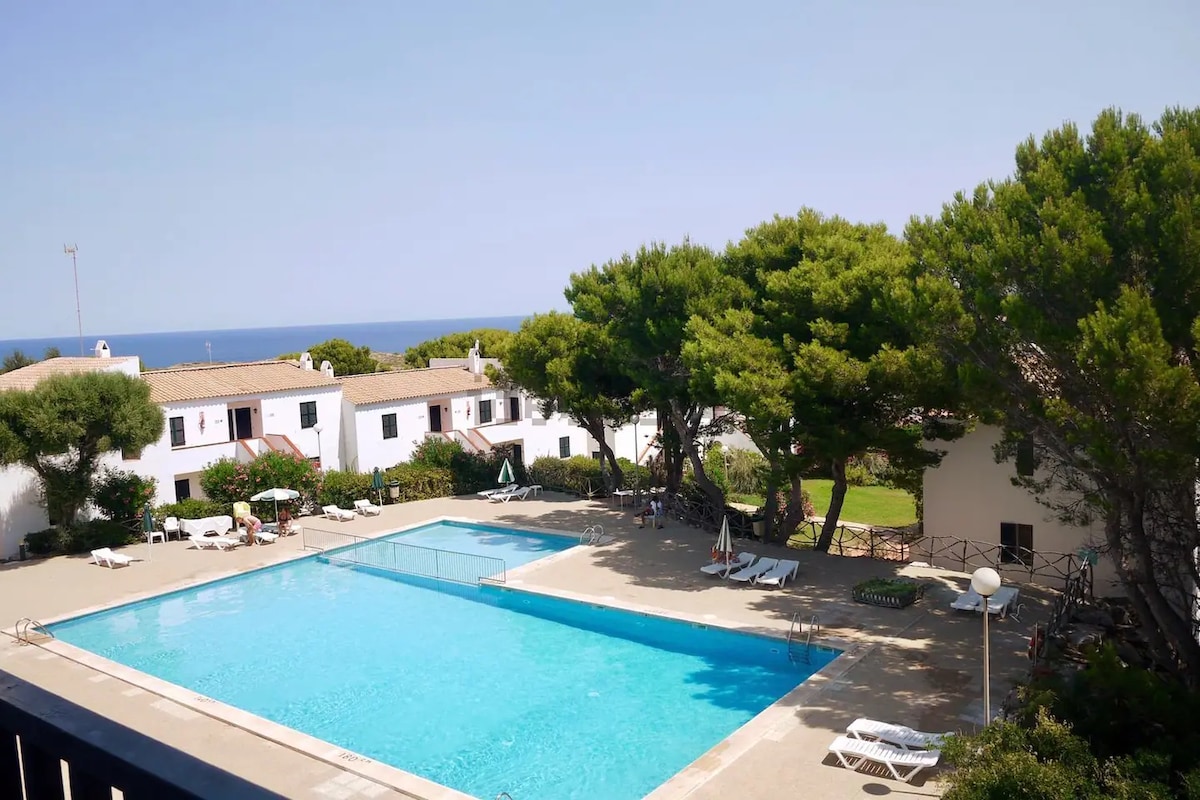 Acogedor apartamento de 40 m² con 2 terrazas privadas y vistas al mar, ideal para relajarse en Menorca. 1 habitación, 1 baño, salón con cocina integrada y 2 camas de matrimonio (para 4 personas). Perfecto para parejas o familias pequeñas. Situado en un complejo familiar tranquilo con zonas verdes, cerca de supermercados, parada de autobús y GR. A solo 200 m de la bahía de Arenal d’en Castell, disfruta de sol, mar y actividades al aire libre. ¡Vacaciones inolvidables con todas las comodidades!