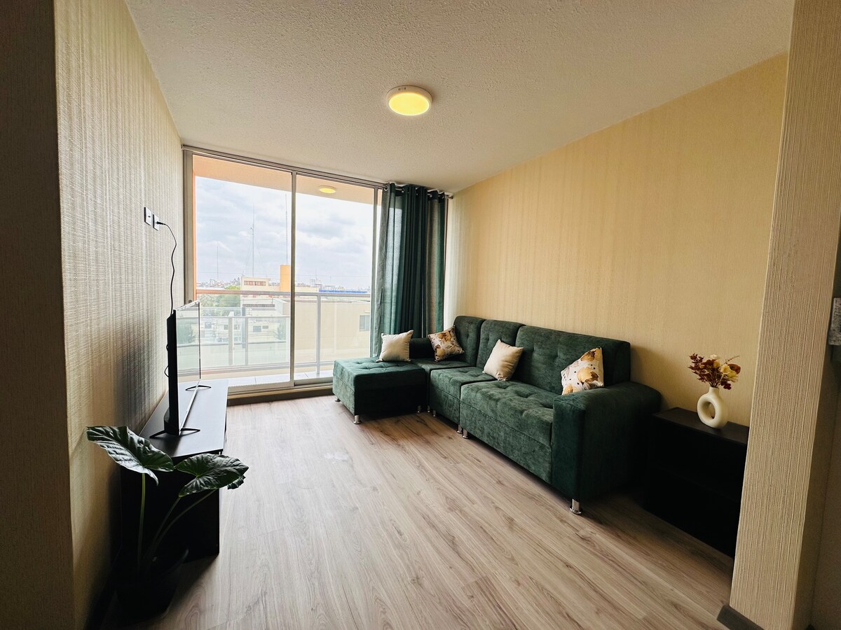 Departamento amplio y acogedor en estreno. Ubicado en una zona comercial y segura, cerca a centros comerciales, bancos, etc con ascensor a solo 8 minutos del aeropuerto y 12 minutos del centro historico y lugares turísticos. Este departamento es amplio, con 3 habitaciones completamente amobladas, perfecto para ti y tu familia. Además, cuenta con seguridad las 24 horas dentro del condominio y con cochera sujeto a disponibilidad y costo adicional de 15 x dia.