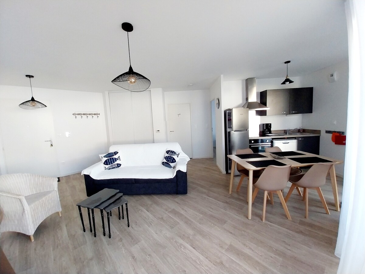 Apartamento totalmente reformado, amueblado de turismo clasificado tres estrellas con una suite, WC separado, cocina totalmente equipada y balcón con vistas al mar. Conexión a internet por fibra, TV Android conectada. En una zona tranquila de Arcachon, barrio de l'Aiguillon, con restaurantes, tiendas a poca distancia y aparcamiento gratuito alrededor de la residencia. A 50 metros se puede disfrutar de la playa, alquilar scooter de los mares o embarcarse para descubrir la bahía. Precio decreciente por semana.