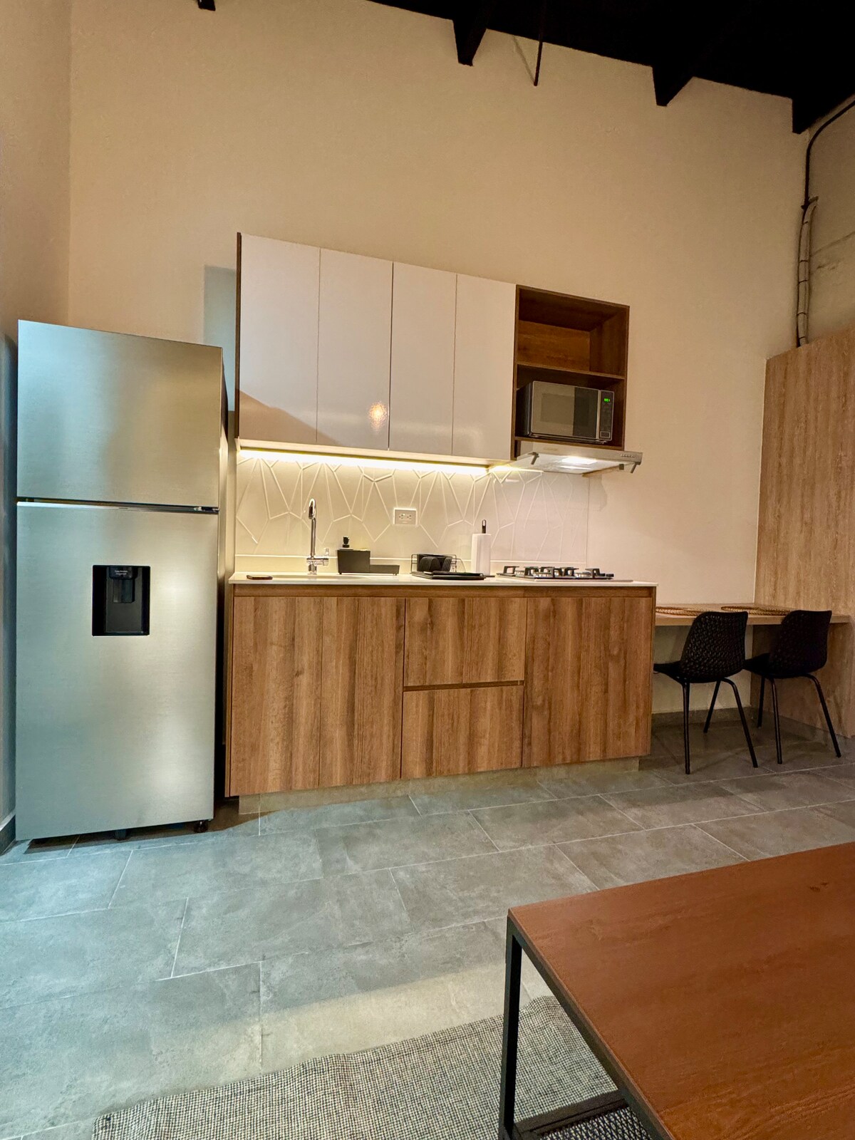 Tokio Living te ofrece una pausa de lujo en el Eje Cafetero. Desconecta en la exclusiva tina de tu balcón privado mientras disfrutas de la brisa local. El interior te envuelve con su diseño sofisticado: Acabados minimalistas, una sala luminosa de estilo industrial y un dormitorio sereno con cálidos acabados en madera. Es el equilibrio perfecto entre estilo, confort y la calma de un spa privado. ¡Reserva la experiencia que mereces!