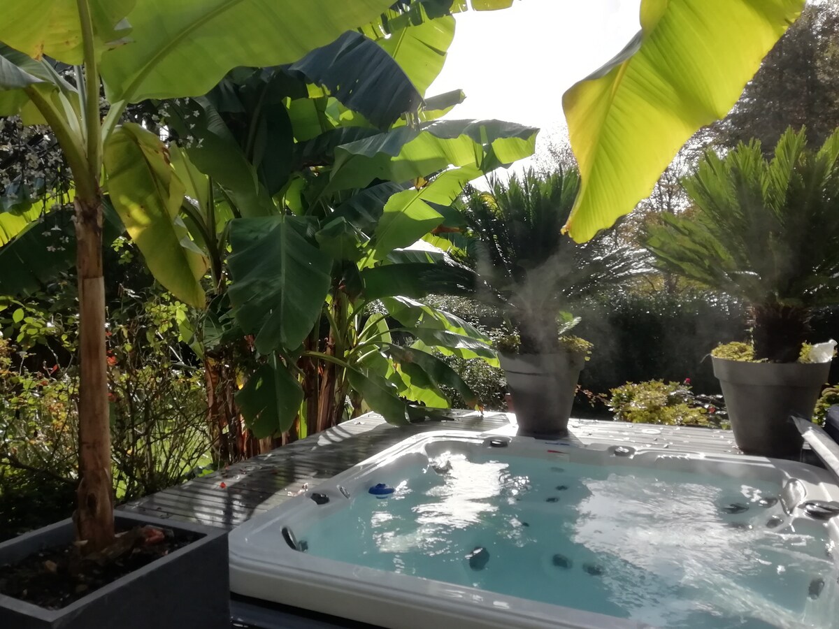 Relájese en este alojamiento tranquilo y elegante en medio de la naturaleza sin vecinos Idealmente diseñado para descansar y relajarse, puede disfrutar de un «spa» de alta gama y una sauna desde una terraza con vistas abiertas al valle. Cerca de muchos lugares de interés (Pont-Aven, Concarneau, Quimper, Clohars-Carnoët, Trégunc, Nevez) Playas entre 20 y 30 minutos Ruta de senderismo, bicicleta de montaña. Ofrecemos un servicio de desayuno y comida, pídanos más información.