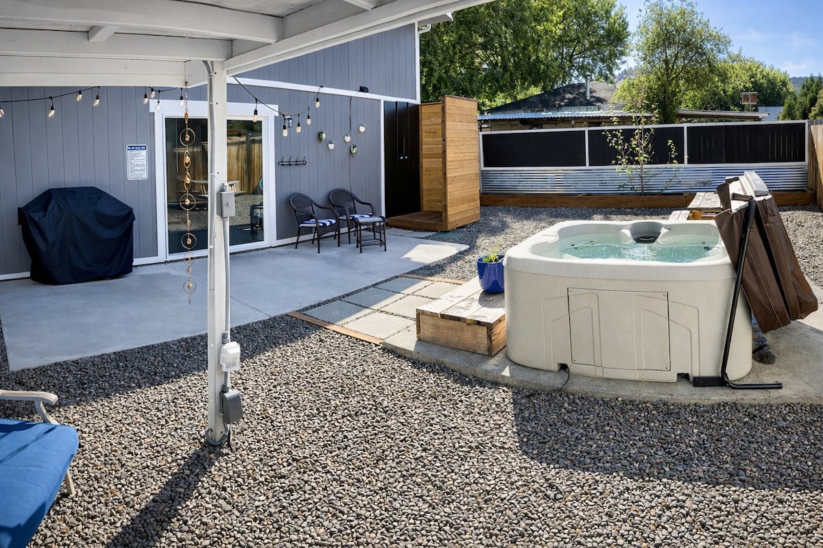 Esta elegante casa moderna de mediados de siglo recién remodelada cuenta con 2 dormitorios con camas tamaño queen nuevas y un baño. Luminoso, limpio y acogedor: el hogar perfecto lejos de casa. Situado a poca distancia a pie del centro histórico de Grants Pass, donde encontrarás increíbles restaurantes y tiendas locales. La casa está a 2 millas de la I-5 y a 10 minutos a pie del hermoso río Rogue. ¡La casa cuenta con una cocina completa para todas tus necesidades culinarias y un patio con asientos y un pozo de fuego en el patio trasero!