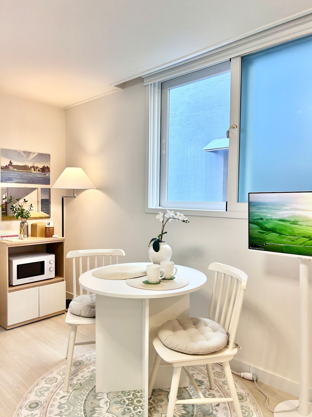 Hola. Este espacio ha sido planificado, diseñado y operado por un consultor de alojamientos en Jeju. Está pensado para que una persona se sienta cómoda y también pueda compartirse con alguien afín. La vista al mar, la luz serena y las obras permiten concentrarse o conversar con naturalidad. Por la mañana, un café acompaña el inicio del día frente al mar y el pueblo. Al volver del viaje, se puede leer o escuchar música tranquila. De noche, descansar viendo una película. Aquí, el ritmo es amabl