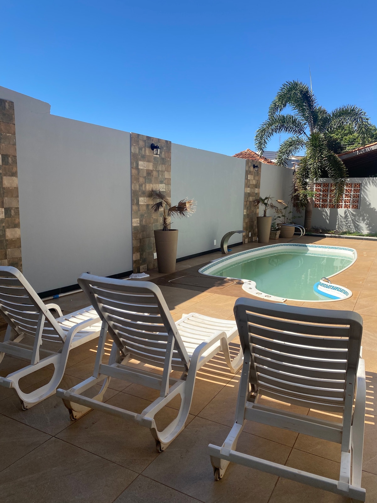 Área de lazer piscina com aquecedor solar
