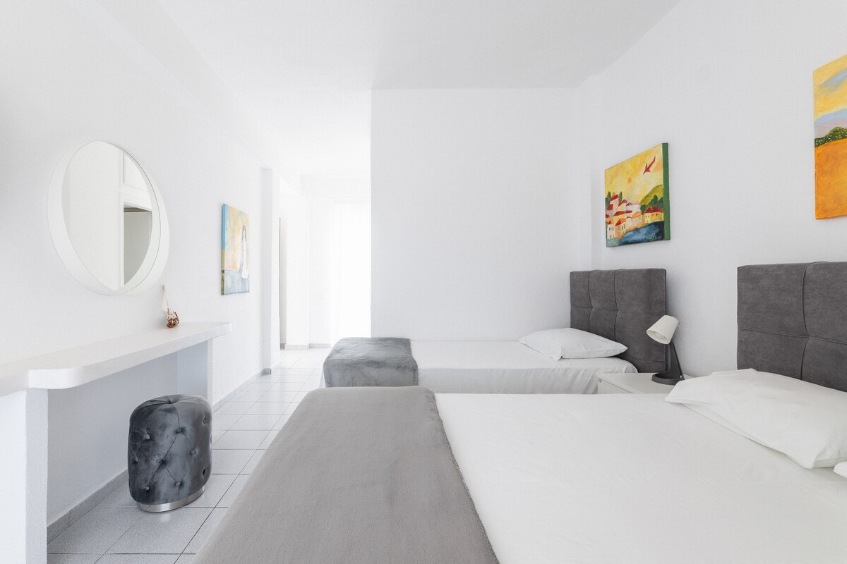 The apartment is located in the center of the village . It is on the second floor on the front side of the building . It has full equipped kitchen, there is free WIFI, a TV and an air conditioner (AC) free of charge. Housecleaning services are also included (free of charge every 3 days). Our business follows all necessary rules and precautions,in order to prevent the spread of COVID-19, which are regulated by the Ministry of Tourism.So this business has acquired the "Health First" certification.