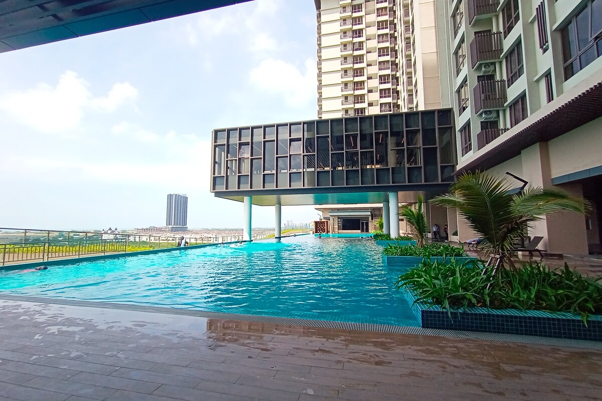 Yolo@ Seaview Bali Residence 2R2B 4-6pax + 2 estacionamiento gratuito/ 500 Mbps Wifi gratuito ilimitado - 2 camas doble + 2 colchones plegables. - A 5-10 minutos de la playa de Klebang, la calle Jonker, el crucero por el río A'Famosa/Melaka, el centro comercial Mahkota Parade/Dataran Pahlawan Melaka Megamall. - Muchos cafés y restaurantes cerca. - Llegada autónoma - Se requiere un depósito antes del check-in. - El registro anticipado y la salida después de la hora establecida están sujetos a disponibilidad (habrá un cargo adicional).