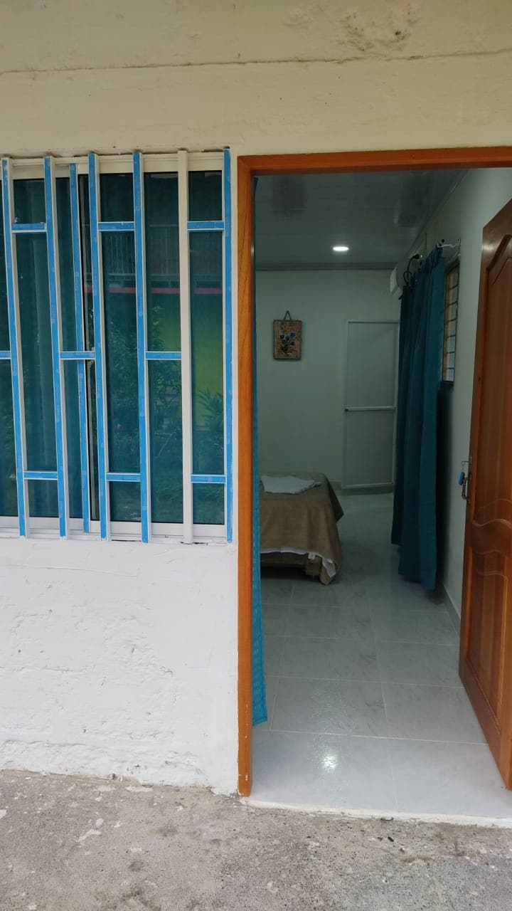 Relaxe em uma casa com muito estilo, tranquilidade e segurança. Contamos com 4 aparelhos de ar condicionado (1 em cada quarto e 1 na sala), com acesso a transporte público, supermercado e serviços de entrega em domicílio. Os quartos têm um ótimo estilo caseiro, e o espaço interno conta com pátio, boa ventilação e jardim externo público. Oferecemos serviço de vigilância 24 horas. É o lugar ideal para passar os dias com sua família e/ou animal de estimação no coração de Urabá, a terra prometida.