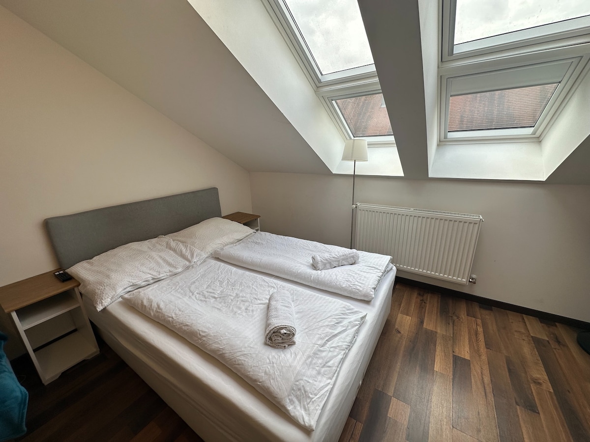 Este elegante apartamento urbano de 40 m² ofrece un refugio tranquilo en un patio, perfecto para noches de descanso en Viena. Disfruta de una cama tamaño king bajo el techo inclinado, aire acondicionado, TV inteligente con Netflix, wifi rápido y cocina totalmente equipada. Relájate en el balcón privado con vistas a la azotea. Necesitas solo 2 minutos para el metro y 10 minutos para el centro de la ciudad. Ideal para parejas, viajeros solitarios o viajes de negocios.