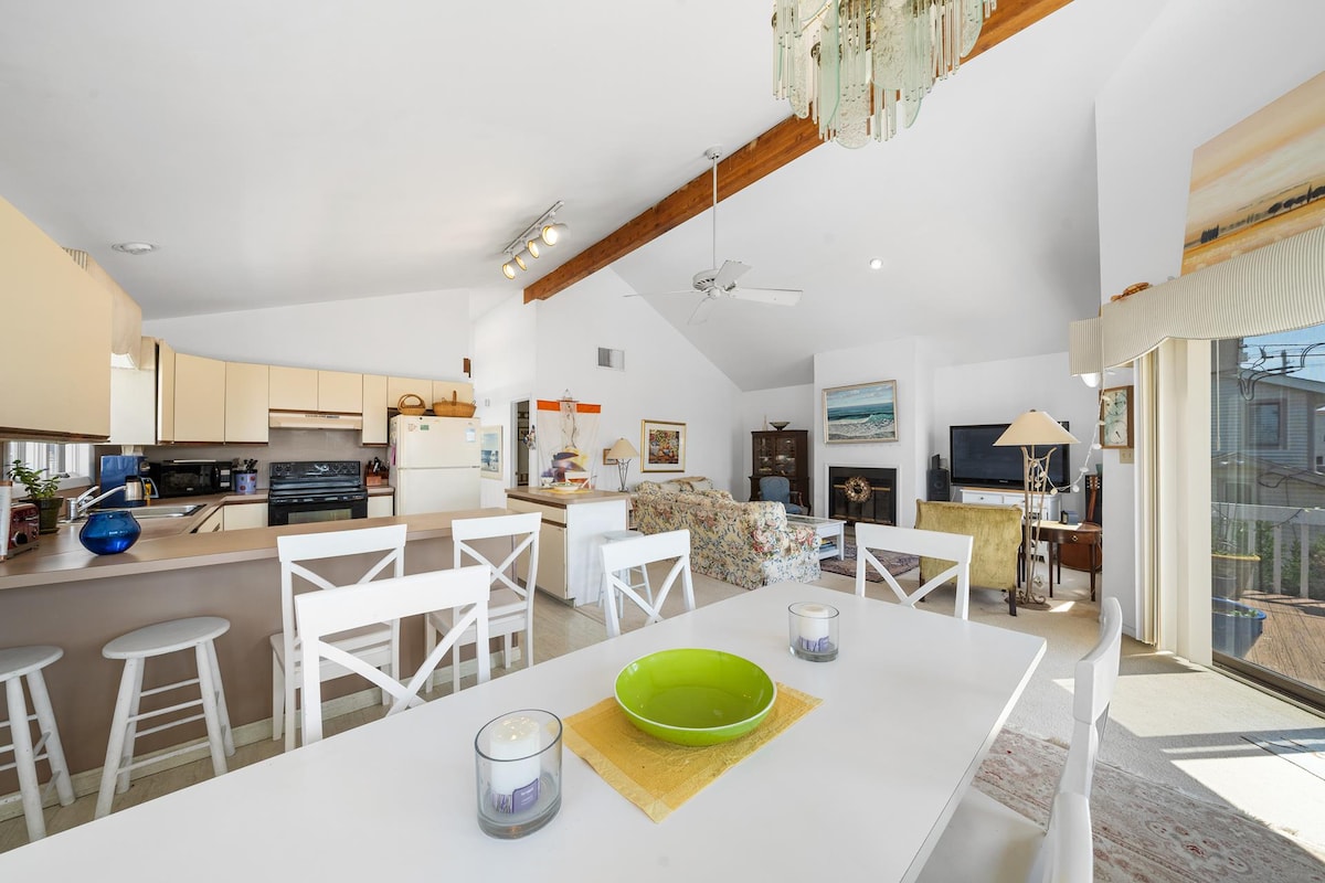 ¡NUEVO, RECIÉN COMPLETADO para la TEMPORADA 2025! Impecable y privado, este loft King personalizado, de 400 pies cuadrados y de concepto abierto, es ideal para parejas en busca de una escapada romántica a la playa. Impecablemente construido con acabados como un techo abovedado de cedro, paredes de tablones y un baño tipo spa, este condominio es de una clase por sí mismo. Ubicado en el corazón de Stone Harbor, este condominio en el segundo piso está a 1,5 cuadras de la playa y a 1,5 cuadras de las pintorescas tiendas y restaurantes de la calle 96. ¡Estaciona tu auto y RELÁJATE!