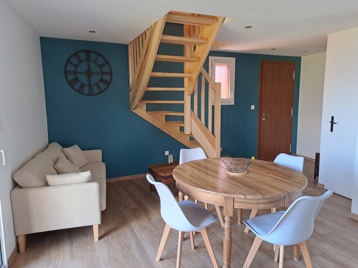 Apartamento (37 m ²) + terraza con sofá (7 m²) situado en planta baja de villa / entrada independiente / orientación sur / cerca del centro de la ciudad. Cocina equipada, dormitorio separado por un techo de cristal / plaza de aparcamiento delante del alojamiento. TV conectada Amazon Prime. Cerca: supermercados (Lidl Auchan) - panadería- farmacia - piscina con hammam sauna - parque- autobús de la ciudad gratuitos. Ideal para 2 adultos, viajero de negocios, moteros Se proporcionan sábanas / toallas.