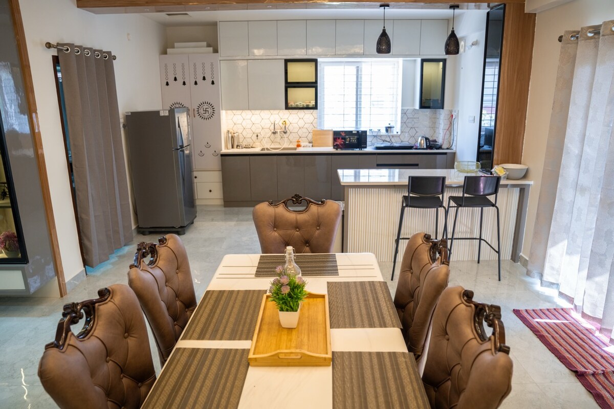Te damos la bienvenida a THE VINTAGE GROVE Entra en un 3BHK premium de temática vintage donde el encanto del viejo mundo se encuentra con el lujo moderno. Más que una estadía, es tu escapada urbana refinada. Ubicada en un prestigioso vecindario, esta casa cuidadosamente seleccionada es perfecta para familias, amigos y viajeros de negocios que buscan espacio, estilo y comodidad. Con una rica estética vintage, rincones acogedores, exuberante vegetación interior y un cálido resplandor blanco que se siente como la hora dorada, cada detalle está diseñado para elevar tu estancia.