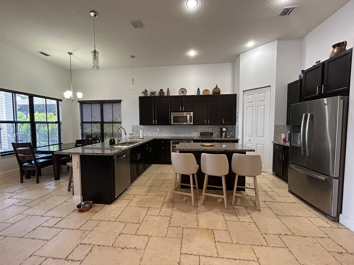 Casa Vivir la Vida is a newly renovated home with luxury upgrades to ensure you with the most relaxing stay. - Heated Pool with Retro Design - 15 Min to Vanderbilt Beach area - 15 Min to Mercato Shops and Restaurants. - Designed for Families - Pet Friendly - Designe for up to 10 people, 3 bedrooms, 2 bathrooms, 5 beds and a futon - Free Parking - Laundry In Unit - Fully Equipped Kitchen - Huge Backyard with Gazebo. - Fast Wifi - Residential Neighborhood. - Barbecue Grill - 24/7 Available Hosts
