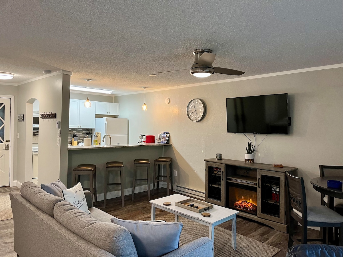 ¡Alójate al lado de Sugar Mtn Ski Resort, una de las mejores ubicaciones de la zona de Banner Elk/Sugar Mountain! Tranquilo y escondido, muy romántico. Lo que les encanta a los huéspedes: ✔ A poca distancia a pie de Sugar Ski and Golf Resort ✔ Hermosos alrededores de montaña ✔ Nuevo estilo 1BR moderno renovado y mobiliario Chimenea de gas con control remoto✔ romántico ✔ A 1 minuto de tiendas de comestibles, tiendas y restaurantes. ✔ Cama tamaño king Cama Murphy✔ secreta para un tercer huésped ✔ Lavadora/Secadora en la unidad ✔ Terraza trasera cubierta privada