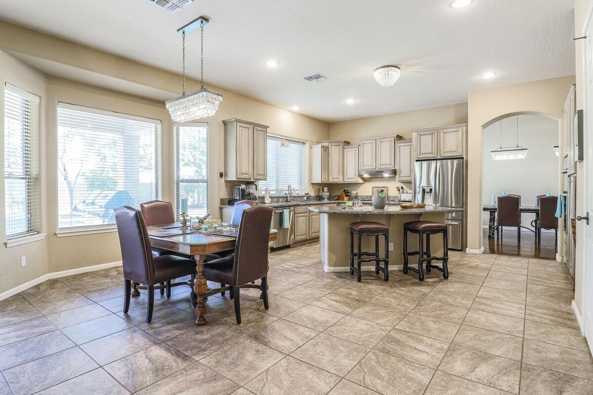Esta casa de 4 dormitorios y 2 baños se encuentra en Estrella Mountain Ranch. El patio trasero: jacuzzi para 5 personas, 4 televisores, barbacoa de gas Webber, fuente de agua, comedor y amplio césped adicional. La casa tiene 2450 pies cuadrados con suelos de madera, persianas de plantación, diseño abierto con una gran habitación, sala de estar, cocina y comedor. El dormitorio principal tiene un baño privado con dos lavabos, bañera de inmersión, ducha separada, inodoro privado y un gran vestidor. 2 piscinas climatizadas tipo resort. Cumple con todos los requisitos locales STR0000134.