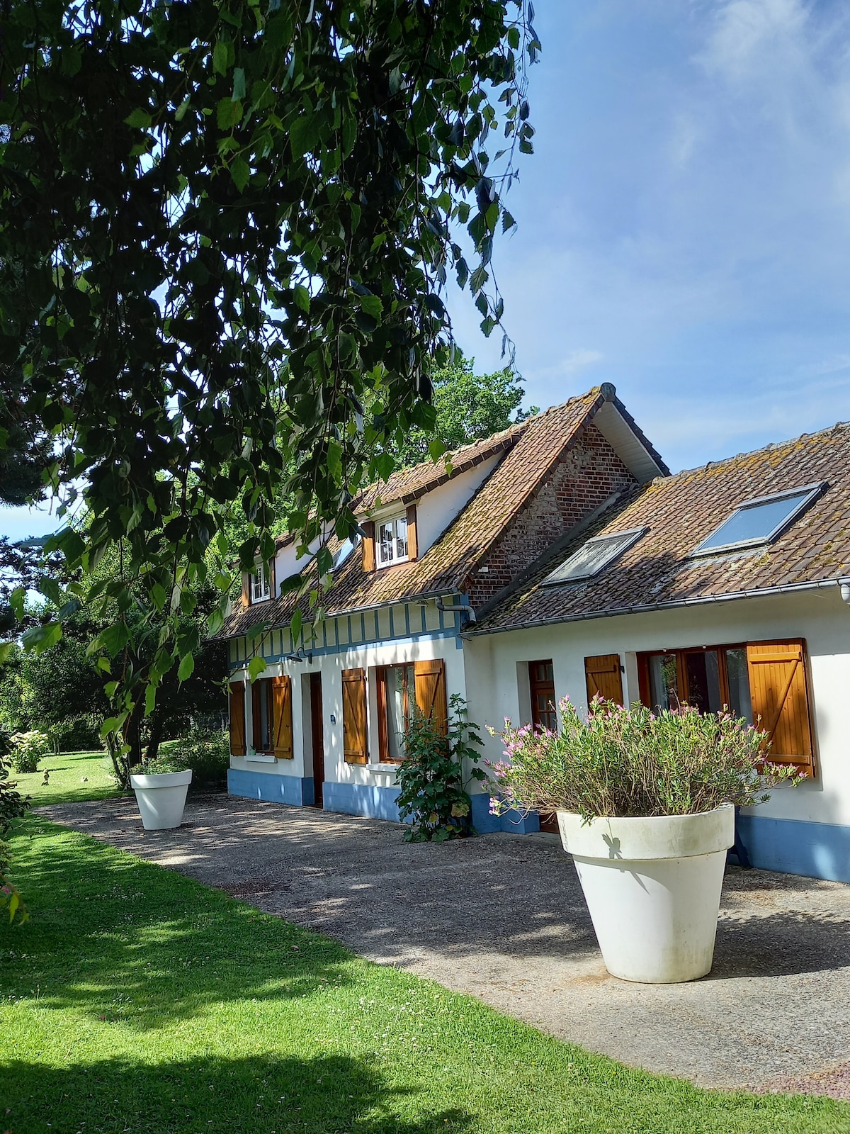 Venez séjourner dans notre Maison de campagne, ancienne bâtisse normande entièrement rénovée et décorée en 2022, située sur un grand terrain arboré et clos de 2000m2. Très confortable et chaleureuse, elle se compose d’une grande pièce de vie de 60m2, d'une cuisine entièrement équipée, de 2 chambres et d'une grande salle de bain. Vous profiterez d’une grande terrasse avec salon de jardin, barbecue et parasol. Idéalement située à 3min de la plage de Pourville-sur-Mer et à moins de 2H de Paris.