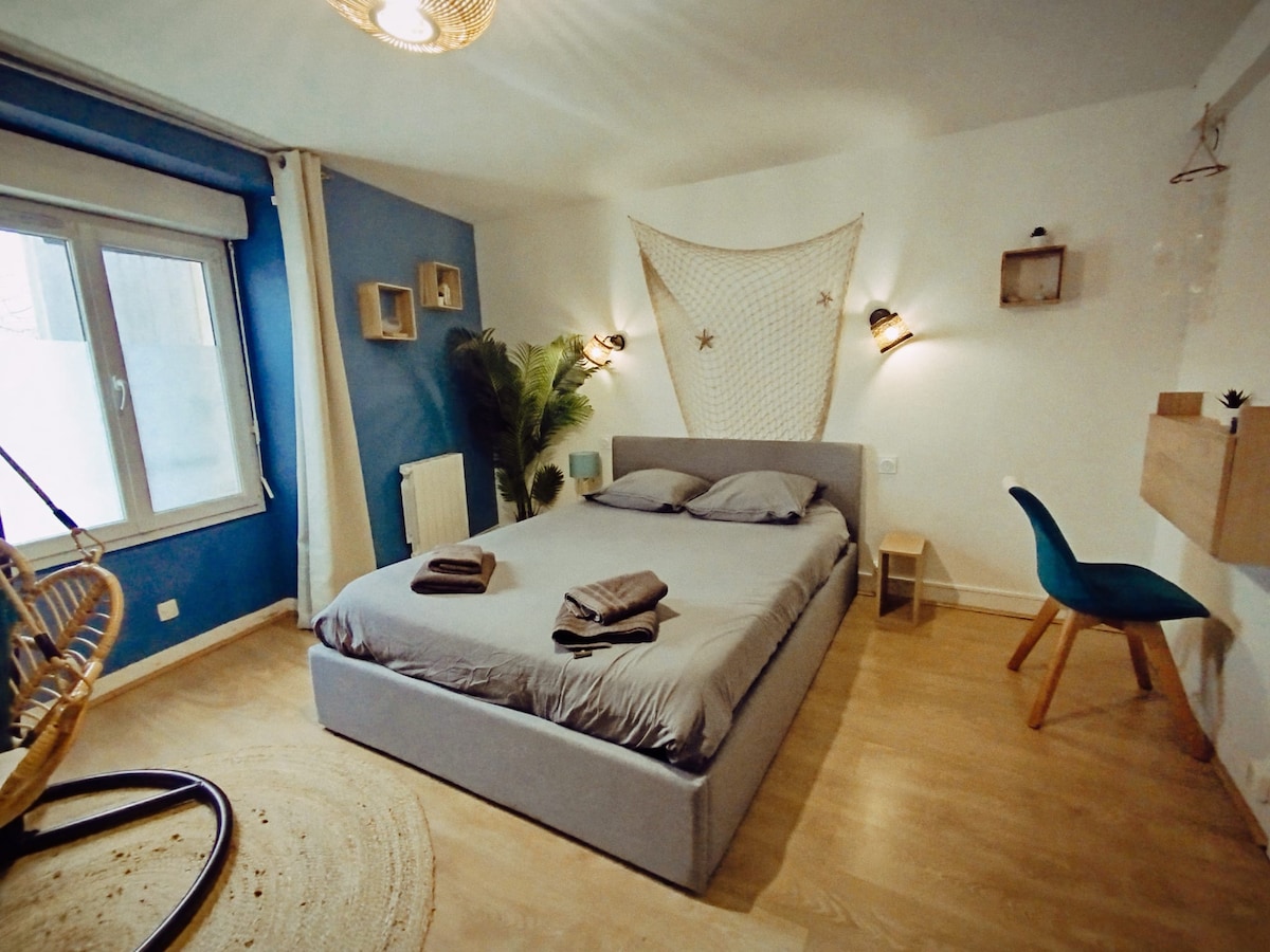 Este alojamiento está muy limpio, se encuentra en el campo, pero cerca de la ciudad, a 400 m de un Auchan y a 700 m del tranvía, y fue renovado en 2020. Es totalmente independiente. Este alojamiento ofrece un patio exterior, una cocina equipada, una sala de estar con sofá cama (160 cm) y un televisor. una zona de dormitorio con vestidor y una cama de 160 cm. Cuarto de baño con lavabo e inodoro. Wifi disponible. Estaremos presentes para recomendarle los mejores planes.