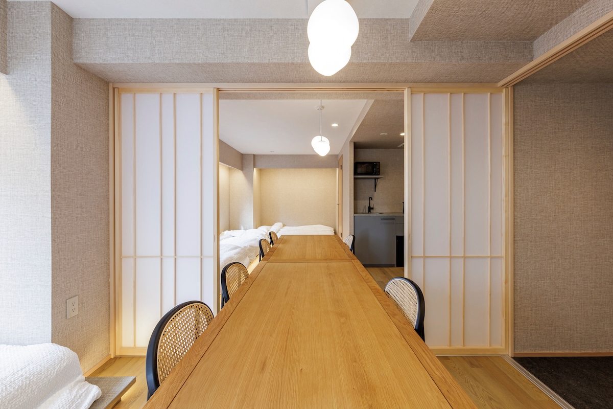 Disfruta de una espaciosa habitación japonesa moderna con camas acogedoras, área de tatami, gran mesa de comedor, cocina. La habitación tiene 2 lavabos, 2 duchas privadas y 2 inodoros, que ofrecen una gran comodidad para grupos. Situado justo enfrente de Tokyo Skytree, a solo 2 minutos de Solamachi y a poca distancia a pie de Asakusa, es la base ideal para hacer turismo. La zona cuenta con supermercados, tiendas y muchos restaurantes. Tenemos 9 habitaciones idénticas disponibles. ¡Experimenta tu mejor estancia en Tokio con nosotros!