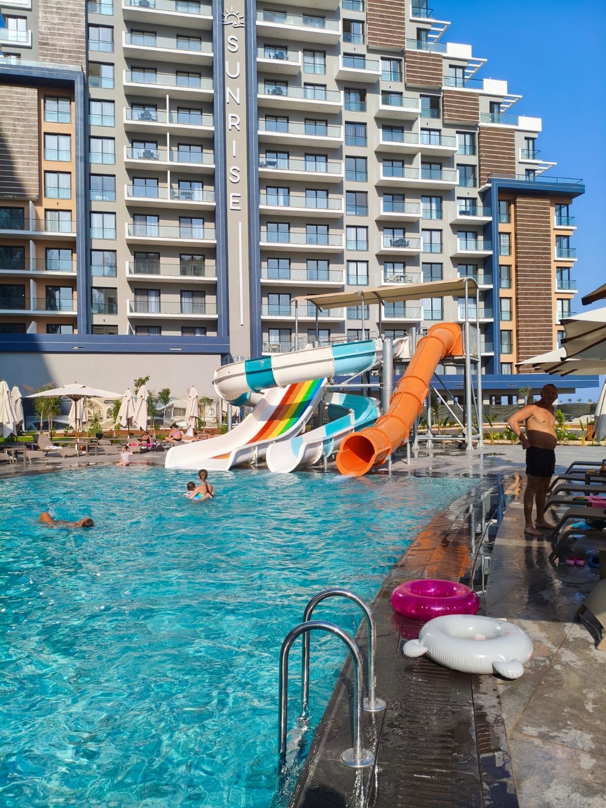 Beautiful apartments in a top family complex in Northern Cyprus! 🏖️ Enjoy 15 pools, an aqua park, kids’ playground, BBQ zones and restaurants. Just a short walk to the famous Long Beach, close to casinos, sports bars and karaoke. On-site you’ll find a market, bike & scooter rentals, fitness club, saunas and hammam. Guests have access to a wellness center, SPA, massage and ice baths. Perfect for 2 adults and a child, ensuring a relaxing and fun vacation by the sea. 🌴
