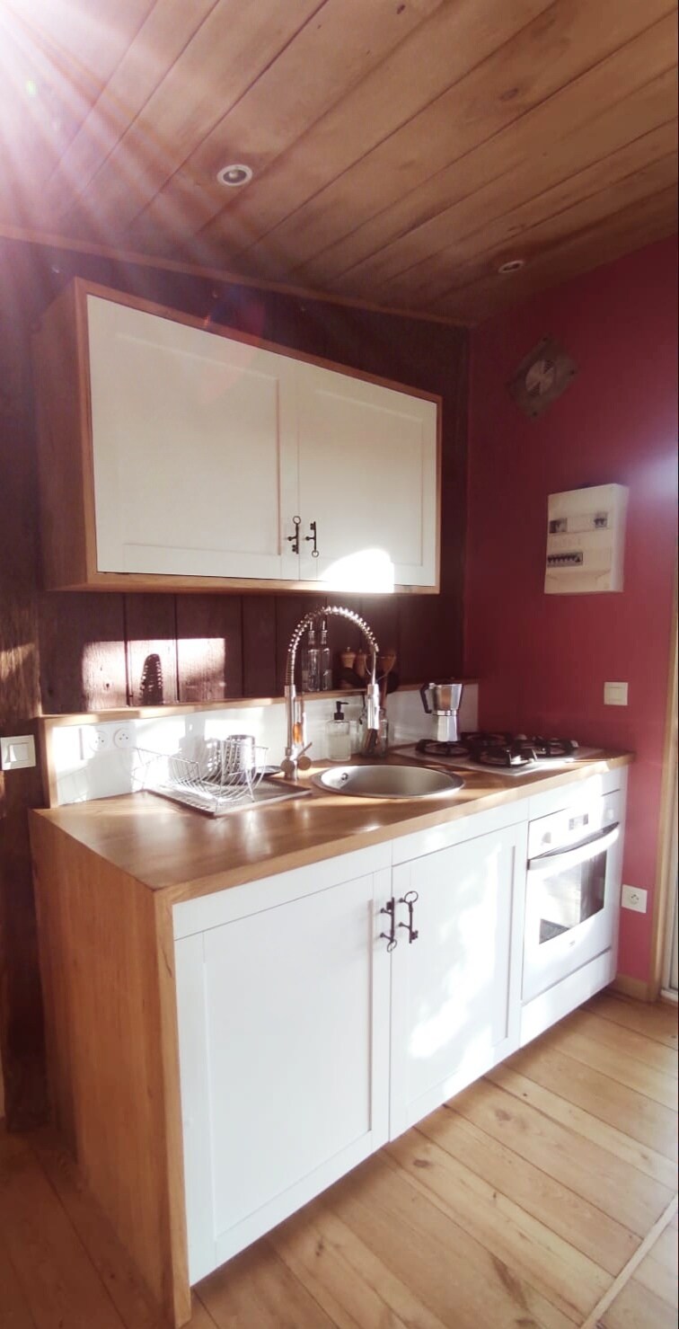 Venga a disfrutar de una cabaña atípica de 25 m² en el corazón de la naturaleza. He construido este pequeño y tranquilo nido que puede alojar de una a tres personas (una cama de 140 y un sofá cama). Podrá disfrutar de la gran terraza de madera y de sus magníficas puestas de sol. Nuestra filosofía en el corazón de la naturaleza y en sintonía con ella requirió la instalación de baños secos (externos y contiguos a la vivienda). El baño nórdico es privado y opcional.