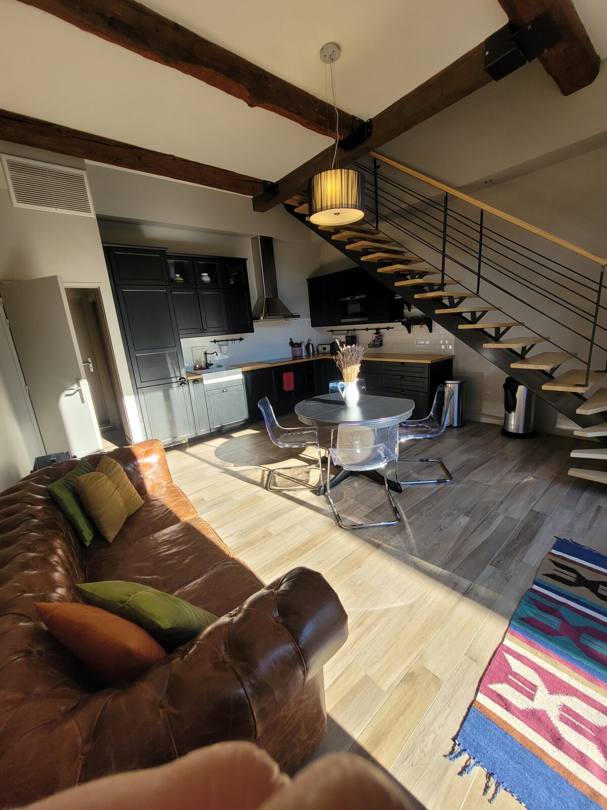 Bienvenido a esta antigua quesería del siglo XVII, totalmente reconvertida en un loft con carácter. Ofrece espacios amplios y agradables, con una gran sala de estar luminosa y una cocina abierta muy acogedora. Cuenta con 3 habitaciones, 2 baños y un garaje para 2 vehículos. Idealmente situado en el corazón de Carcasona, a 50 m del mercado central (Les Halles), de restaurantes y comercios, y a 15 minutos a pie de la Ciudadela de Carcasona. Casa totalmente climatizada.