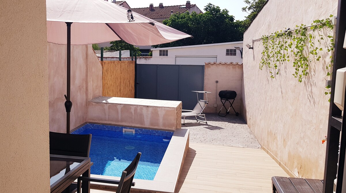 Spac. & comf. hse with 5BR,MovieRm,bbq, pool&Tbl. ftbl .Hi-spd int(1GB),A/C & fully eqpd. kitchen. Quiet area, with Priv. sec & Pan.views of the Henares valley. Car req.Ideal to disconn. ✅AccessibleLuxury ✅Fireplaces ✅EVCharger ✅StoneOven ✅Spac. spaces w/ nat. light ✅Pan.Views ⭐"Evrythg is v. w. lkd aftr, the rms r hg,the bds r v. comf. &,best of all, there is a hm cinema for w. flms.." ⭐"Sandra was att. at all times & was rly kind.." Add my ad to your Faves list by Clkng❤️ in the Top R. cor.
