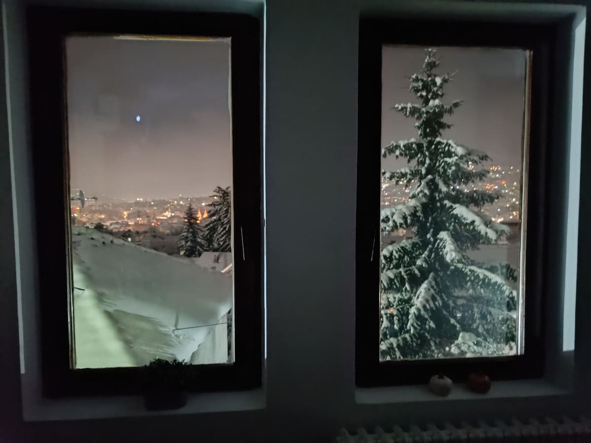 The best view in Old Town Sarajevo! Free garage if our guests arrive by car... Rent apartment in private accommodation in the Old Town, with a beautiful and stunning view of the city of Sarajevo. Why would not you enjoy the breathtaking view, if you come to see this historic city? :) Our area also have healthy, cold and spring water from natural resources from Bosnian mountains.