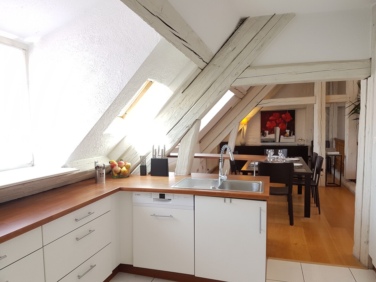 Cómodo y espacioso apartamento dúplex de 150 m², en el corazón de Colmar, a dos pasos de la catedral, de las tiendas y de los mercados navideños. El apartamento accesible directamente por ascensor, consta de una gran sala de estar abierta a una cocina espaciosa, tres dormitorios, una sala de televisión y dos baños.
