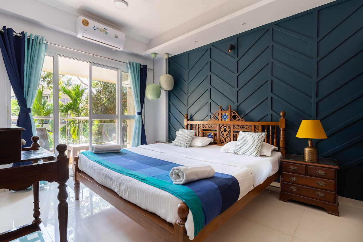 Bienvenido a tu espacioso Tropical 1BHK Escape cerca de Baga Beach, ubicado en el vibrante y céntrico barrio de Arpora, en el norte de Goa. Nota: No hay estacionamiento privado dentro del edificio, pero el carril adyacente al complejo es completamente seguro y se usa comúnmente para estacionar. Este apartamento de 1BHK de hermoso estilo ofrece la combinación perfecta de lujo, calidez y comodidad, ideal para parejas, viajeros solitarios, nómadas digitales o familias pequeñas que buscan sumergirse en el encanto relajado de Goa.