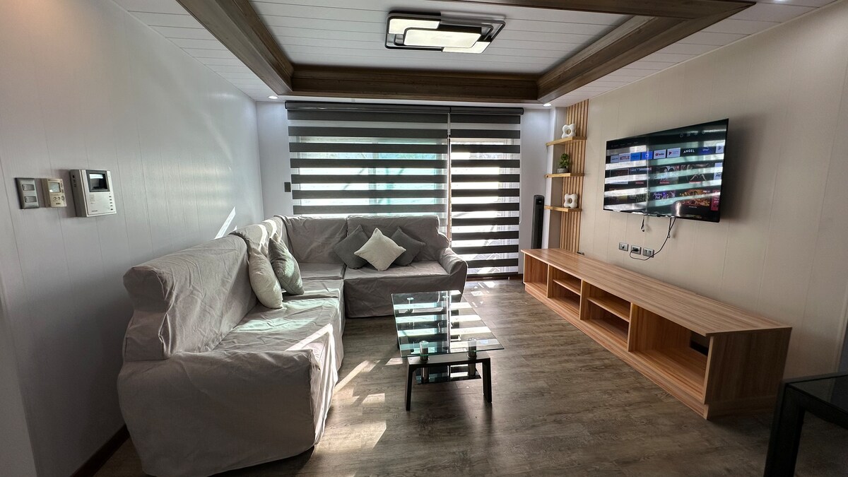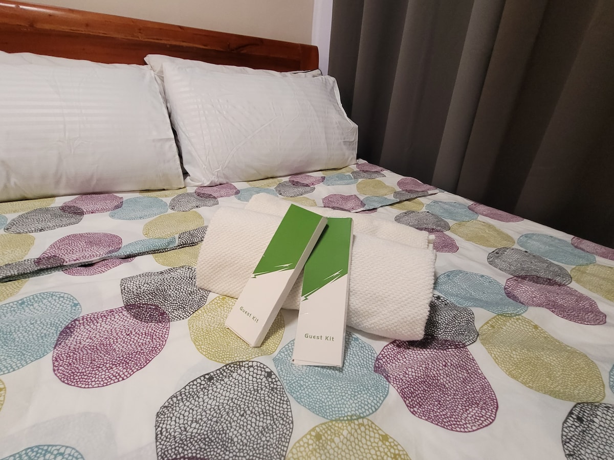 En este alojamiento se respira tranquilidad: ¡relájate con toda la familia! Nuestro alojamiento cuenta con las siguientes características: - Cama tamaño queen con colchón extraíble y adicional a petición. - Sofá cama. - Televisor HD de 55 pulgadas con Netflix y YouTube. - Wifi estable PLDT de hasta 70 MBps de velocidad. Bueno para trabajar desde casa. - Utensilios de cocina completos, estufa eléctrica, arrocera, nevera, microondas, etc. - Baño moderno y limpio con bidé y ducha caliente. - El espacio de estacionamiento cuesta 300 P por noche según la tarifa del condominio. - ¡Se admiten mascotas!