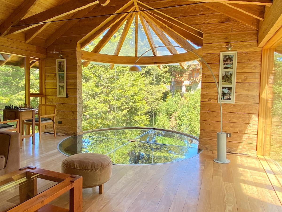 No es una casa cualquiera. De madera de cipres acerrado ahi mismo. Luminosa, amplia, bien aislada para asegurar el mínimo consumo de energía. Decoración de sencilla elegancia acorde al lugar, cuadros de fotos de Florian von der Fecht enmarcados con madera reciclada. sin vecinos, rodeada de bosque, de senderos y acceso privado al arroyo Blanco que limita la propiedad. El murmullo del Arroyo Blanco se interrumpe por el canto del huet-huet.