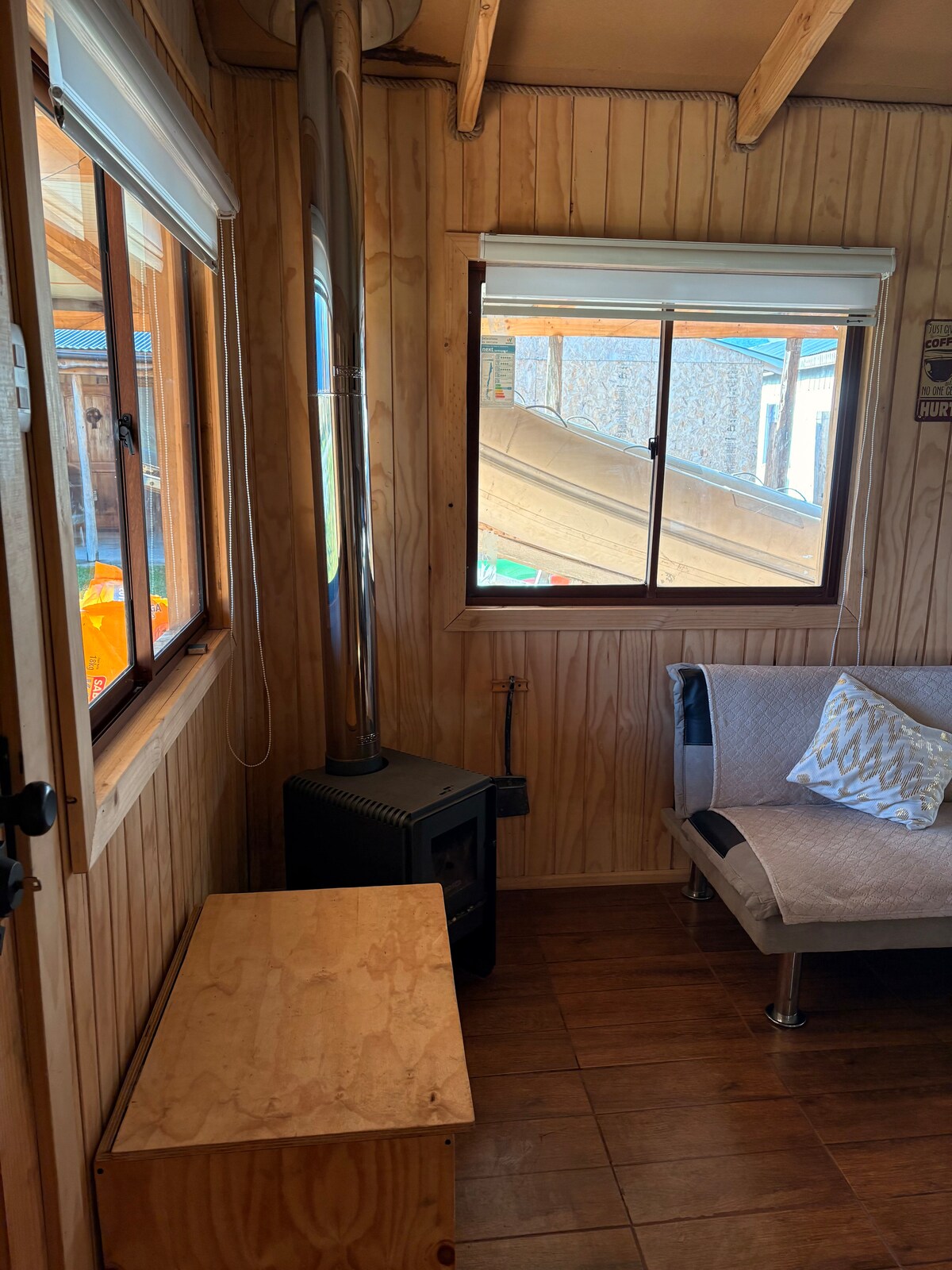 Cabaña en la naturaleza, en una pampa verde llena de flores, aire puro y el sonido del campo. Refugio perfecto para desconectarse del ritmo urbano y disfrutar de la tranquilidad. Cuenta con cocina equipada, calefacción, cama acogedora y un espacio luminoso para relajarse. A solo minutos de Río Tranquilo, pero lo suficientemente apartada para sentir una verdadera escapada. Perfecta para familias,grupos de amigos y parejas amantes de la naturaleza que buscan paz, privacidad y un entorno mágico.