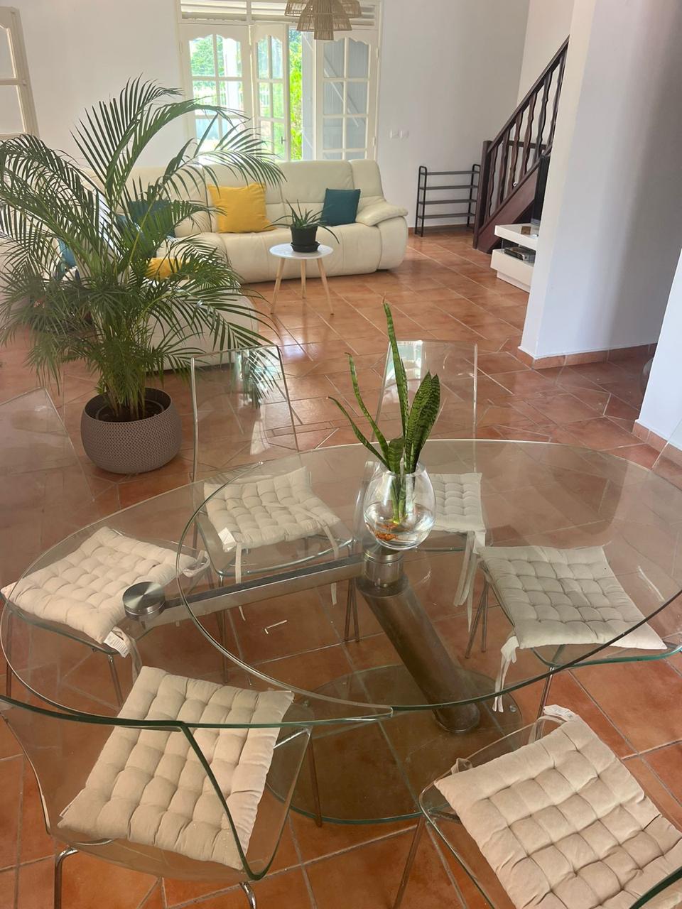 Esta gran casa tiene un gran espacio al aire libre de 100 m2, entre la terraza y el carbet, en el corazón del jardín. ¡Un auténtico remanso de paz! Tiene 4 dormitorios, incluida una suite principal abierta a la terraza, con su baño. Una de las habitaciones tiene una cama en el altillo de 120*190. Es un excelente punto de partida para explorar la isla. Su ubicación céntrica permite acceder rápidamente a las principales atracciones de Grande-Terre y Basse-Terre.