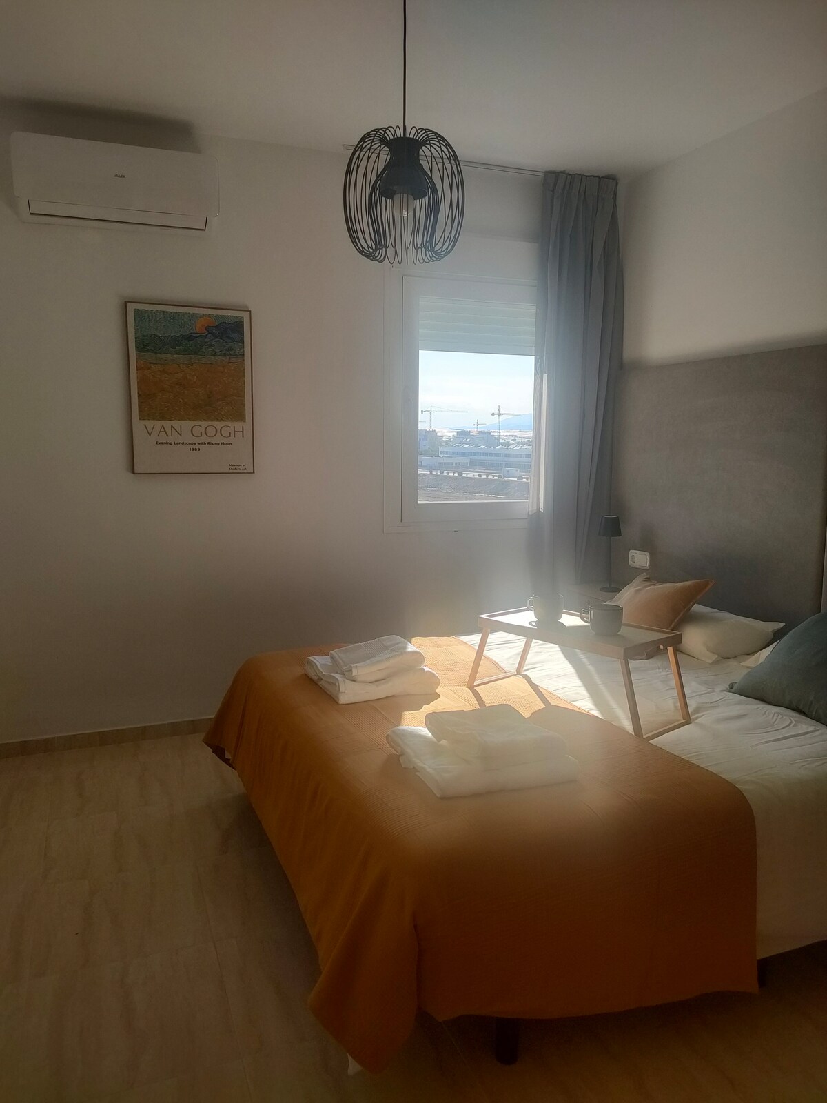Despierta con el azul del mar en este luminoso apartamento de 2 habitaciones con terraza privada y piscina comunitaria. Relájate al sol, desayuna con vistas al mar o disfruta de una hermosa puesta de sol en tu terraza. A tan solo 5 minutos de la playa Terraza con vistas al mar- WiFi- Piscina compartida. 10 minutos a Almería 2h15min aeropuerto de Málaga 40 min Cabo de Gata