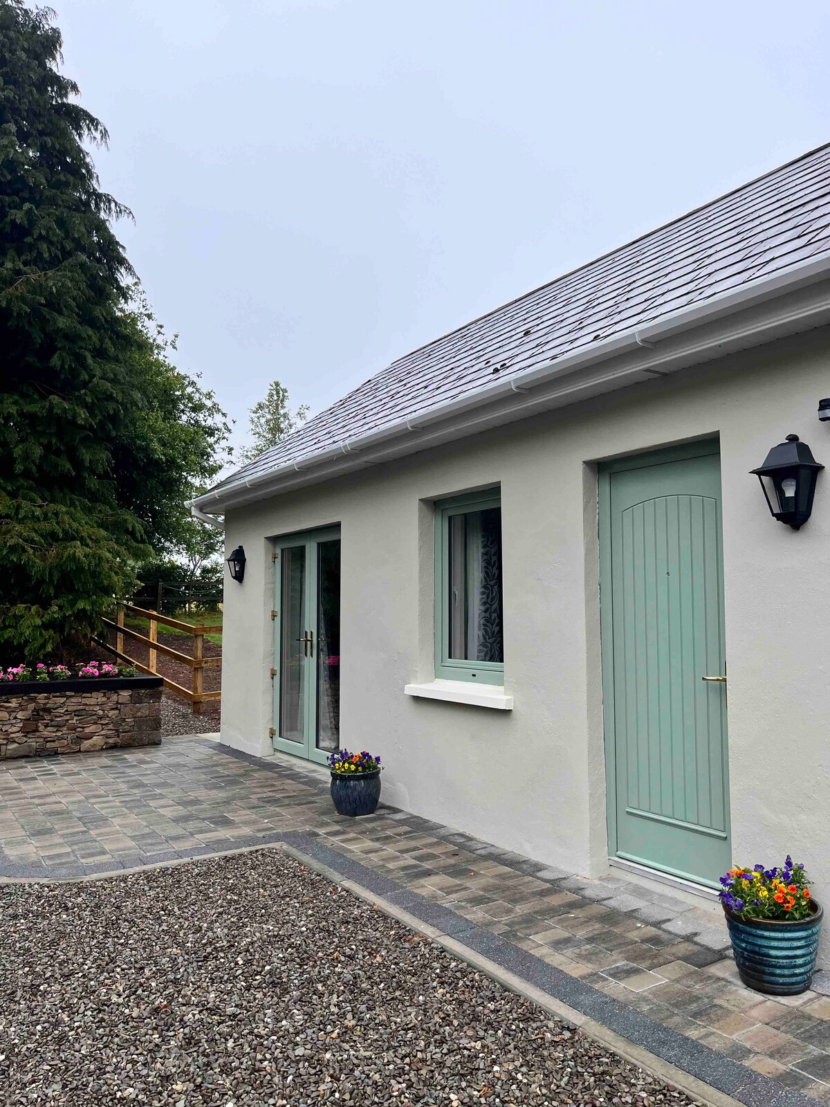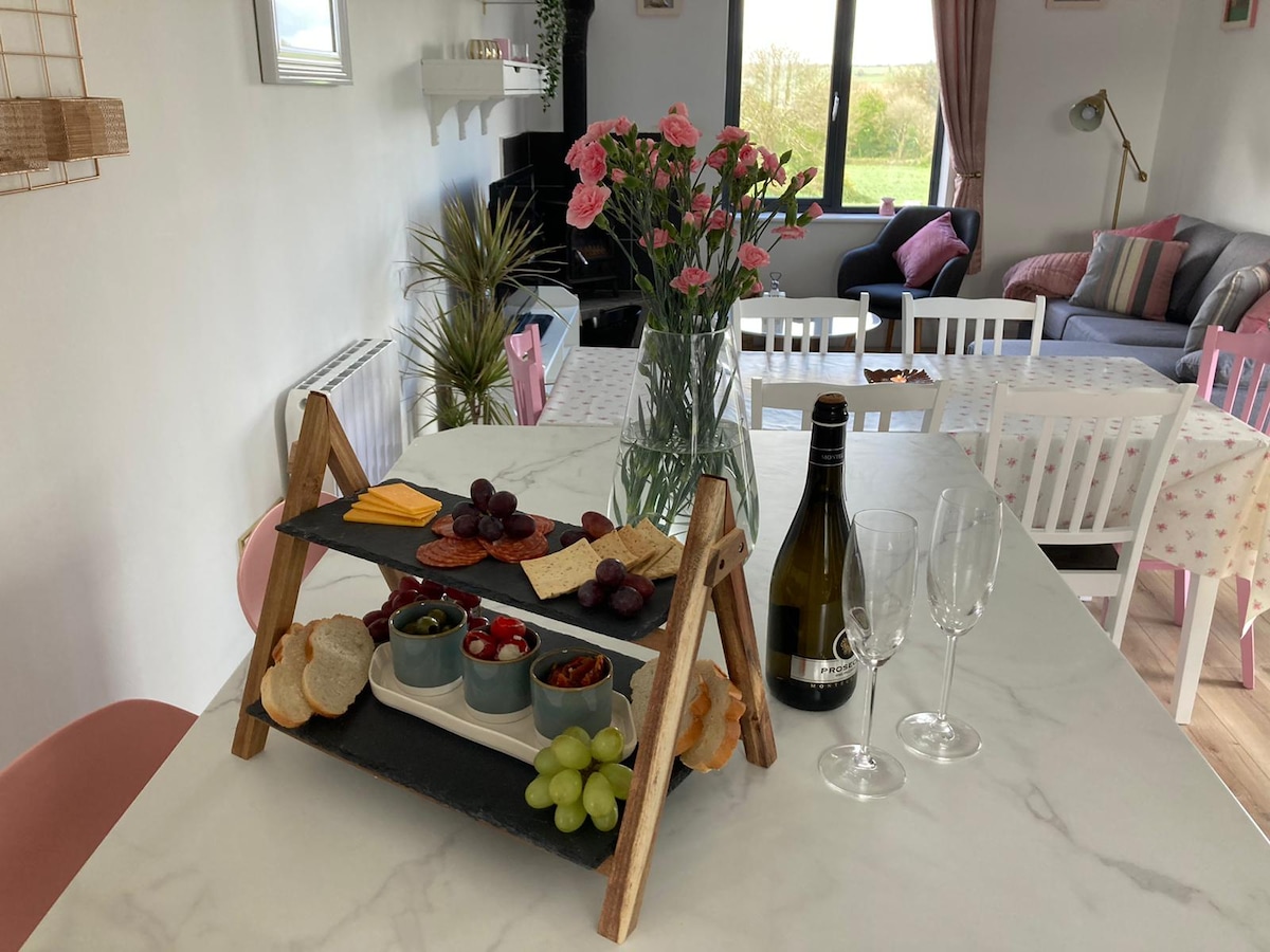 Tenemos una acogedora cabaña para huéspedes en nuestro jardín. Está situado detrás de nuestra casa de campo. Vivimos aproximadamente 4 millas fuera de Kinsale en una encantadora zona rural. Todas las carreteras estrechas. Es muy relajante, un lugar perfecto para relajarse, a la vez que está a 10 minutos en coche de la ciudad turística. Si estás contemplando una visita este año, te recomendamos reservar antes del 19 de mayo si es posible. Nos encanta conocer a nuestros huéspedes de todas partes del mundo. Nota: No hay transporte público desde Kinsale