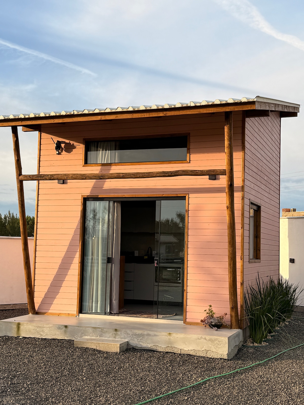 A 300 metros del mar, una tiny house de 25 m², linda y acogedora. Para aquellos que buscan un lugar tranquilo en una zona residencial. Puedes elegir entre la piscina de la casita o el mar de Balneário Gaivota-SC. Tiene capacidad para 4 personas, está amueblada y llena de estilo. Insta: @casademadeiraa
