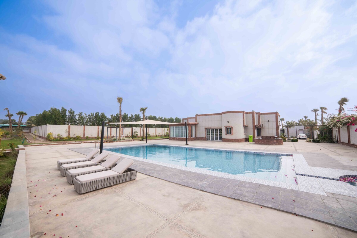 Permítase un descanso relajante de la vida rápida y disfrute de su estancia con familiares y amigos en Firpo Farmhouse. Tenemos instalaciones de última generación para ofrecerle un picnic seguro, limpio y libre de estrés en la casa de campo de calidad en Karachi que expresa comodidad, lujo y belleza natural con exuberantes céspedes verdes, árboles frutales, flores frescas y piscinas.